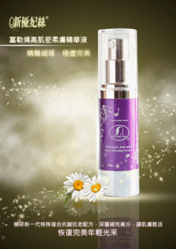 3.精華液具抗老化、抗氧化、嫩白、撫平細紋等作用,並補充肌膚所需養分,促進新陳代謝、調理角質、舒緩易敏感肌膚的不適感,高效保濕,吸收迅速,適用於一般老化、乾燥及易敏感肌膚美容保養